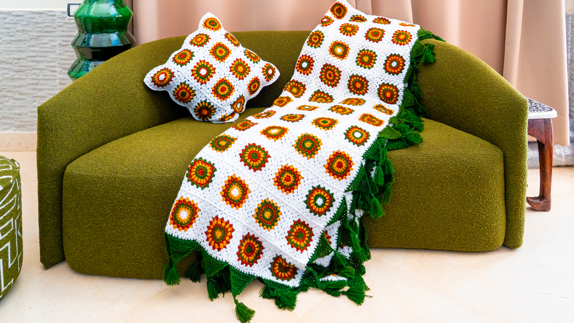 Sunflower Crochet Cushion Cover – Handcrafted Wool