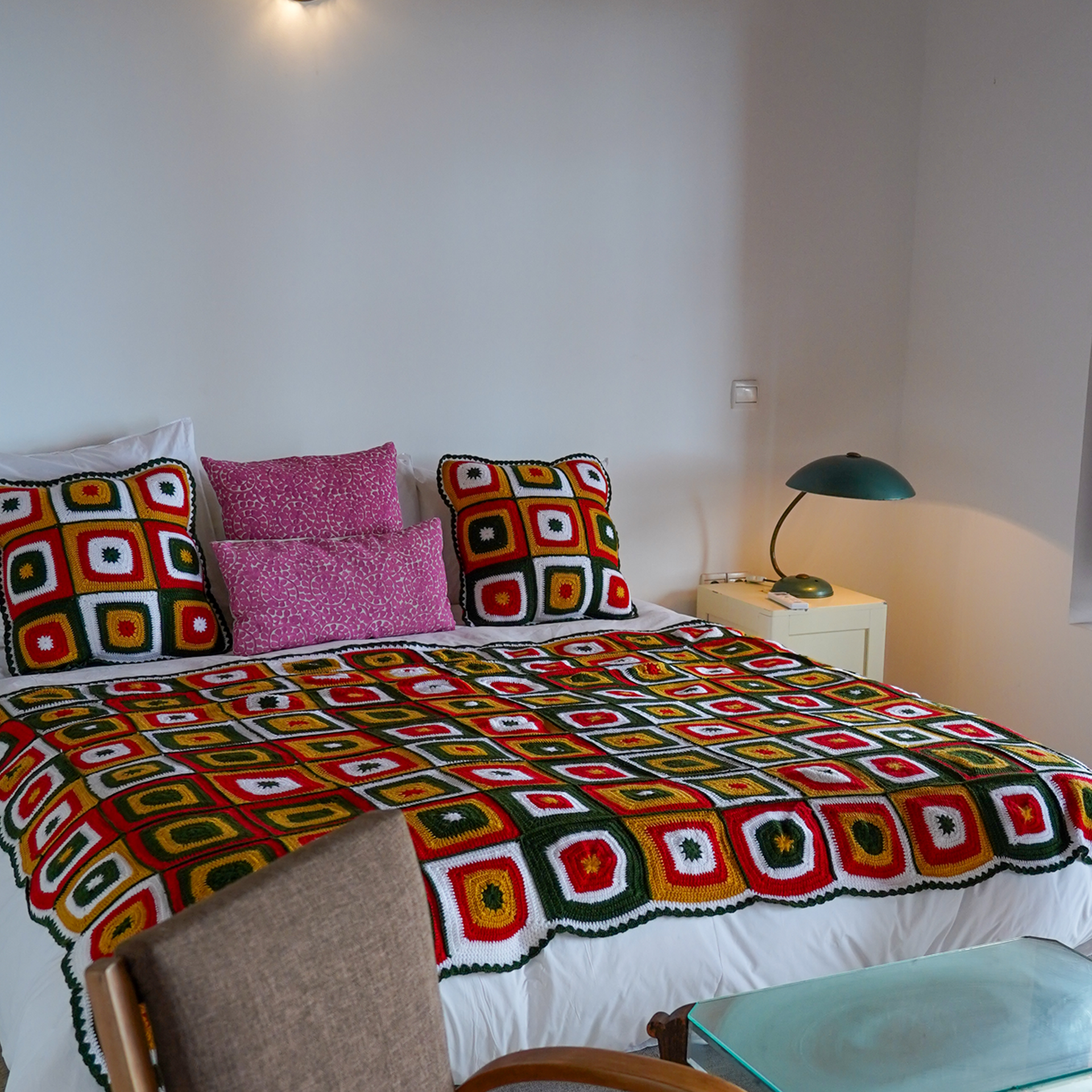 Your purchase supports cooperative workshops led by women in the High Atlas. Each bedspread is woven slowly, piece by piece—subtle variations in weave and tassels are part of its handmade character and make every item unique.