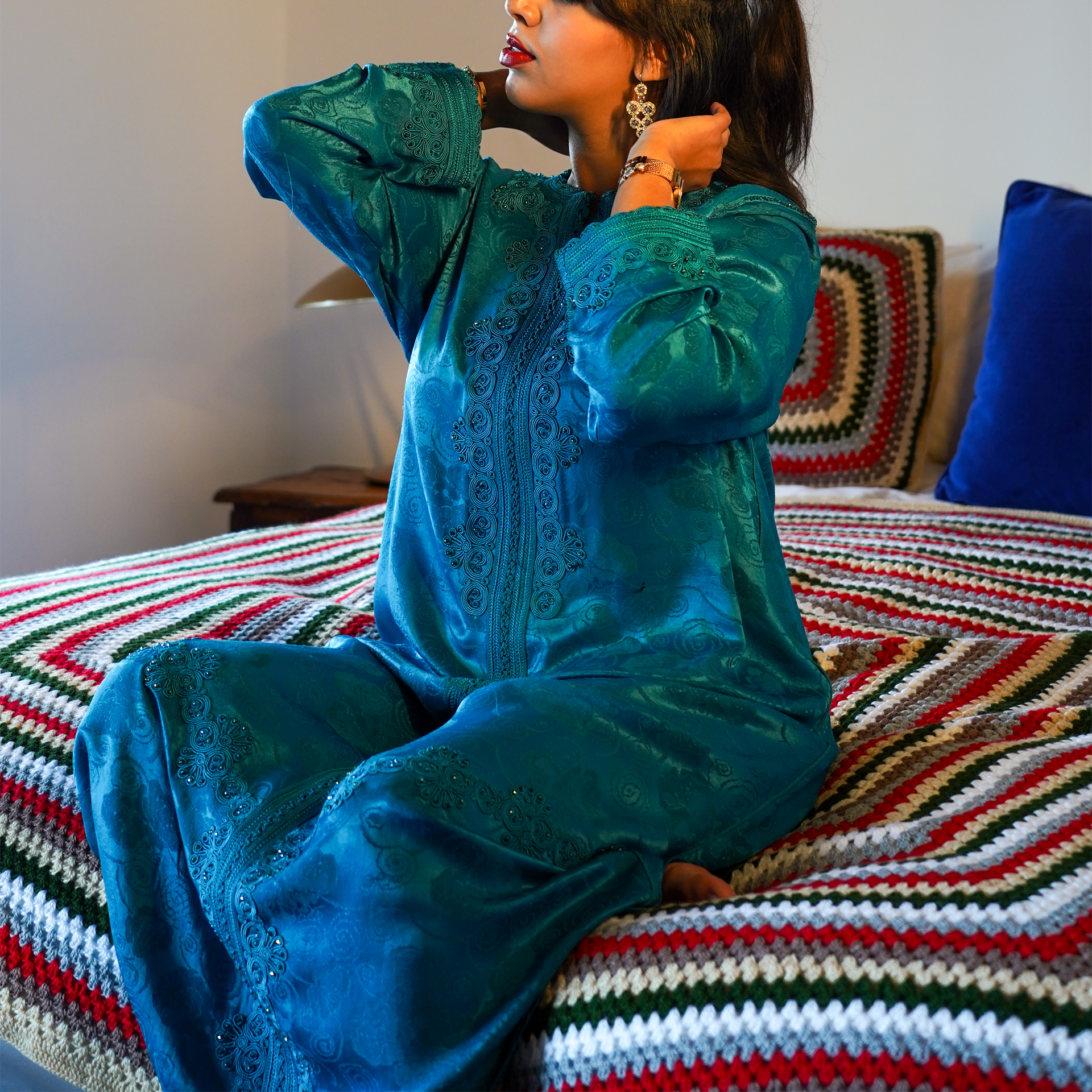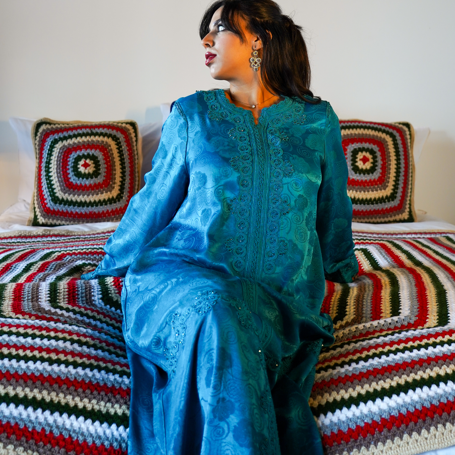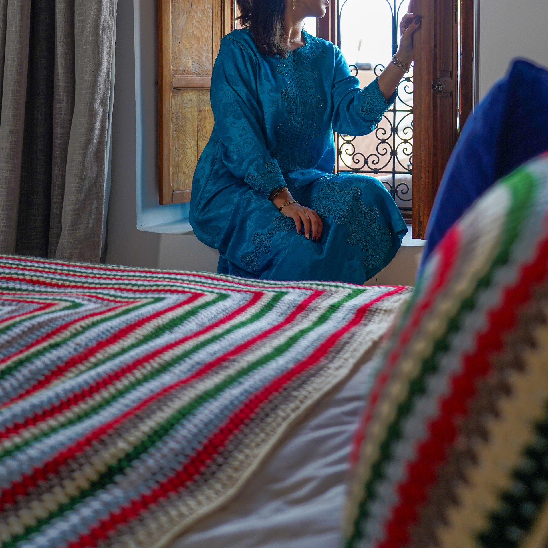 Your purchase supports cooperative workshops led by women in the High Atlas. Each bedspread is woven slowly, piece by piece—subtle variations in weave and tassels are part of its handmade character and make every item unique.