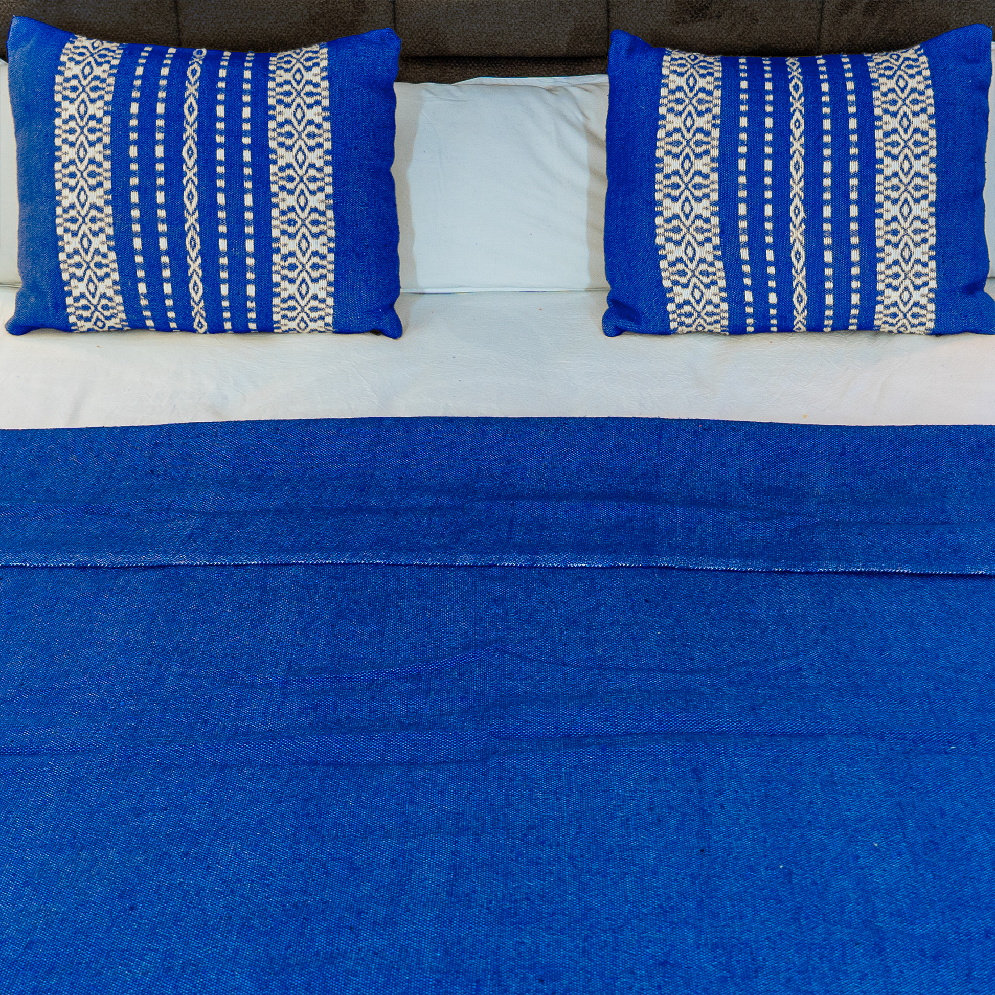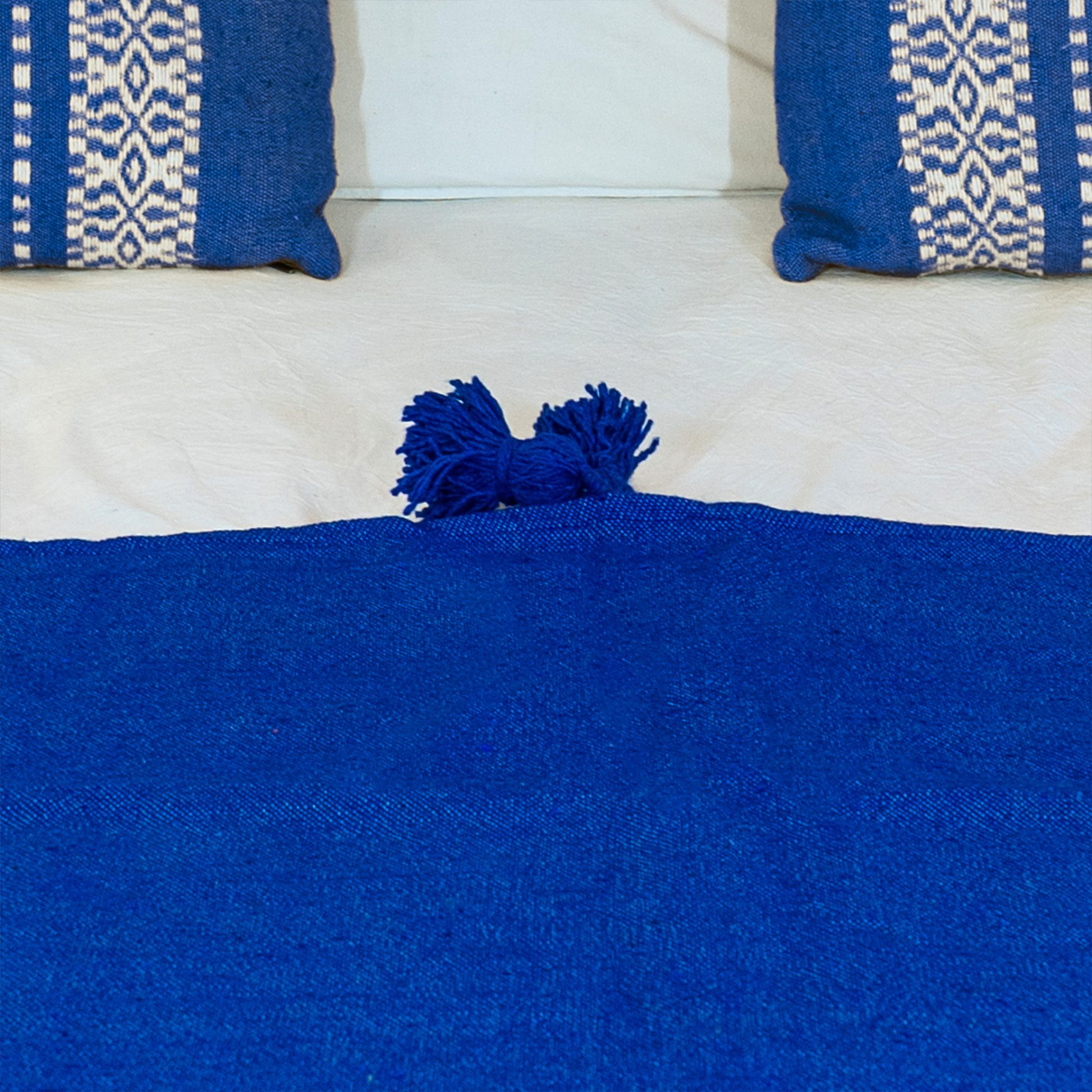 A saturated, jewel-tone layer for the bed. Handwoven by women artisans in Morocco’s Atlas Mountains, this royal-blue bedspread drapes beautifully and finishes with playful hand-tied tassels. Soft, breathable, and naturally temperature-regulating, it’s an easy way to add rich color and artisan character to your room. Matching pillows are available separately.
