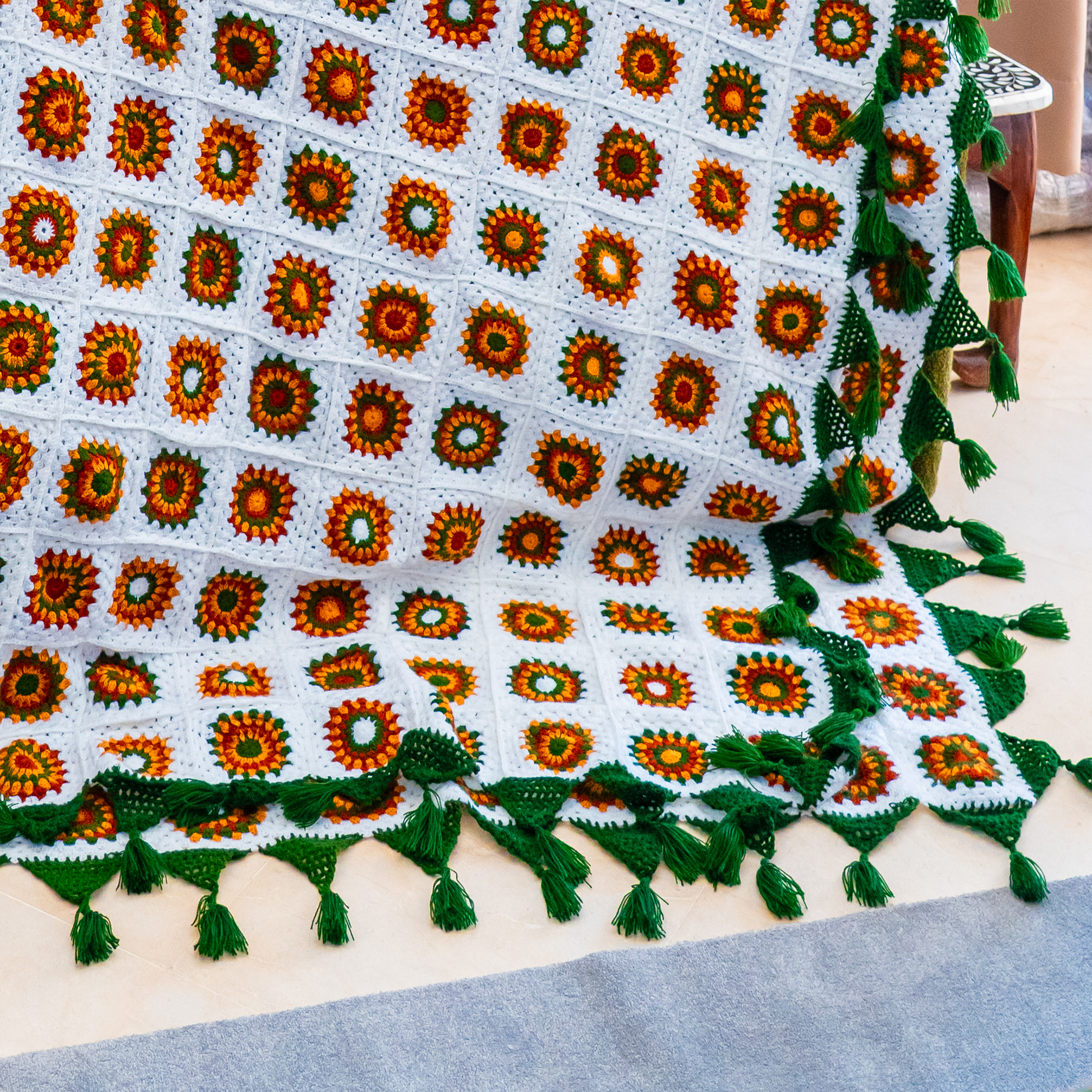 Sunflower Crochet Tassel Bedspread – Handcrafted Wool