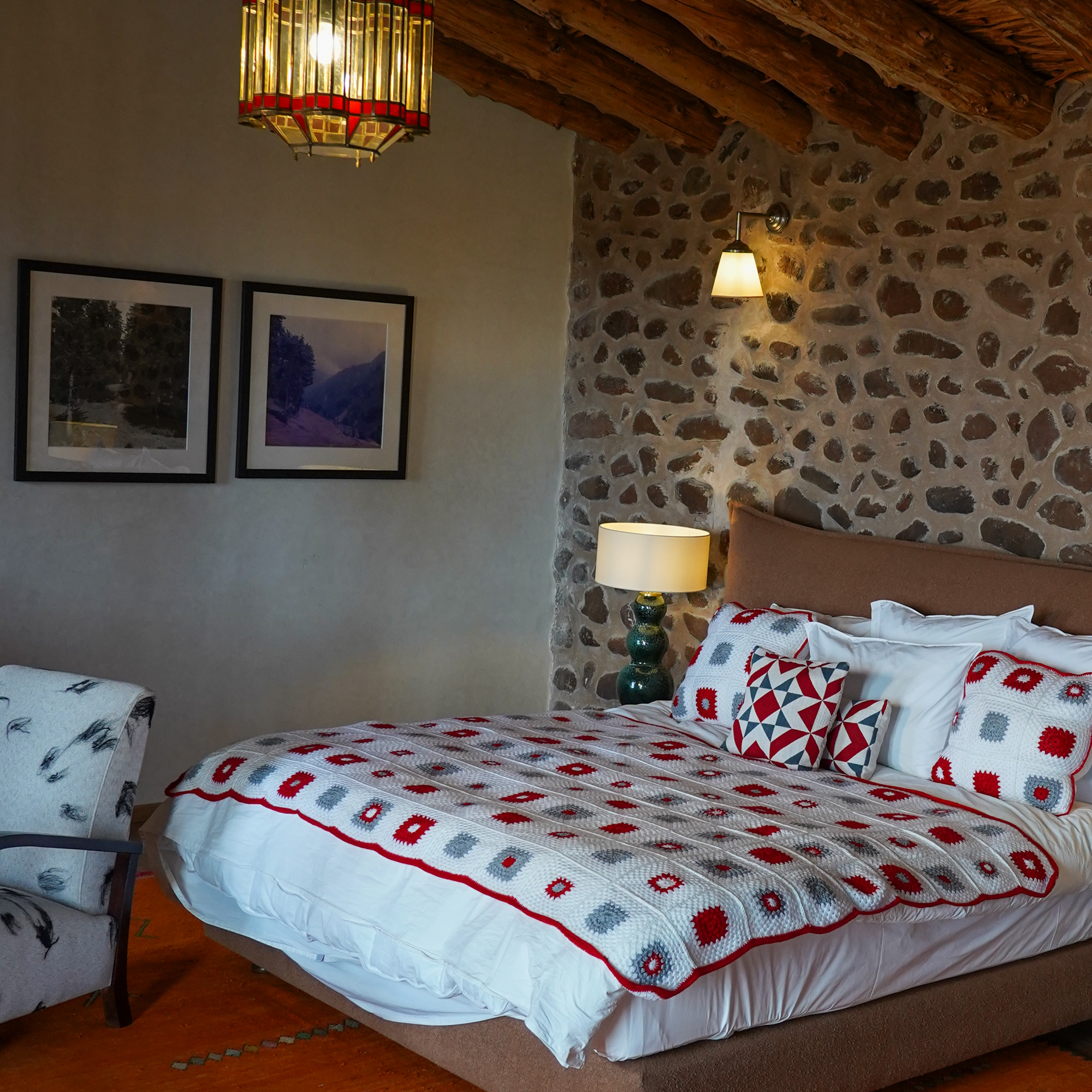 Your purchase supports cooperative workshops led by women in the High Atlas. Each bedspread is woven slowly, piece by piece—subtle variations in weave and tassels are part of its handmade character and make every item unique.